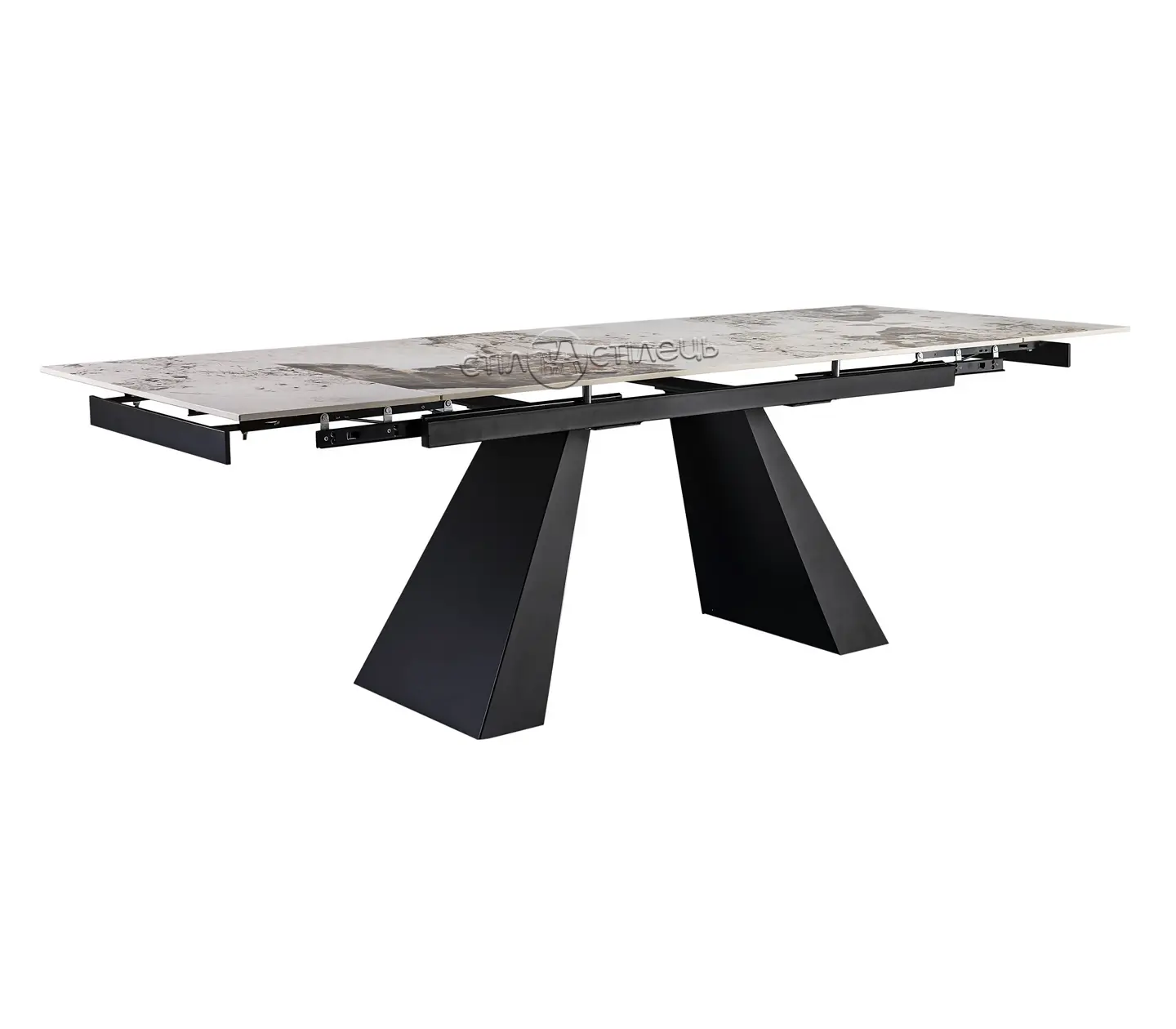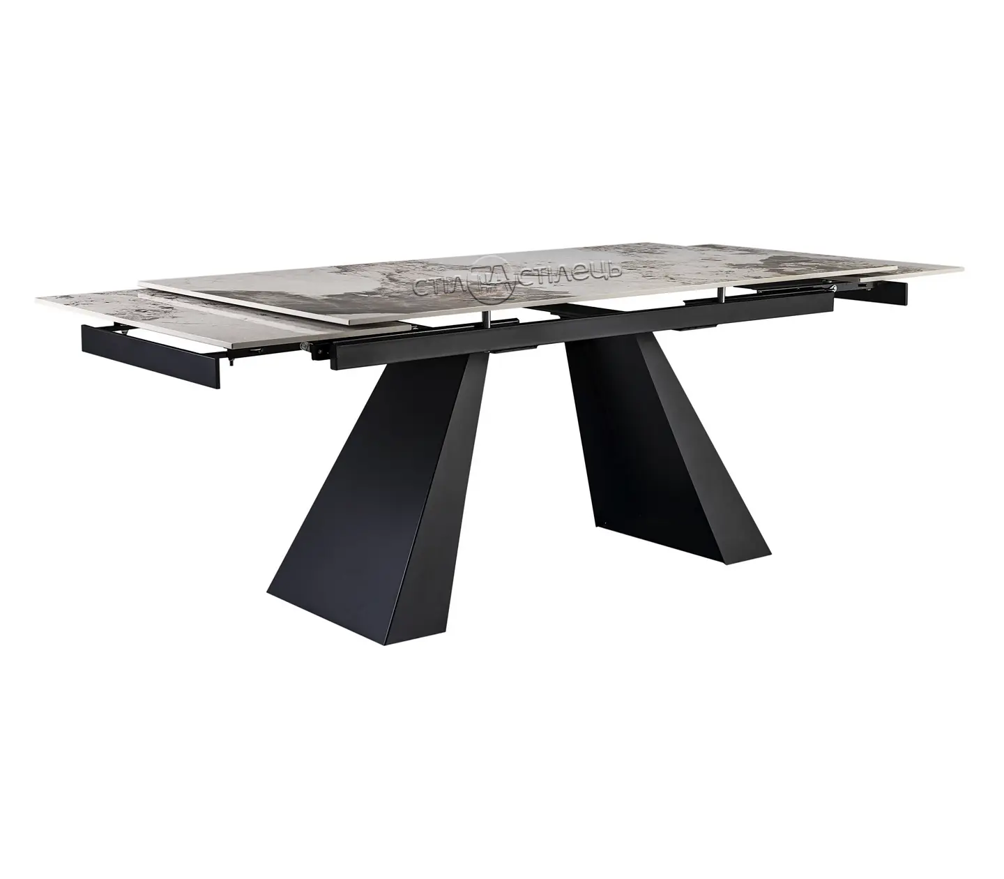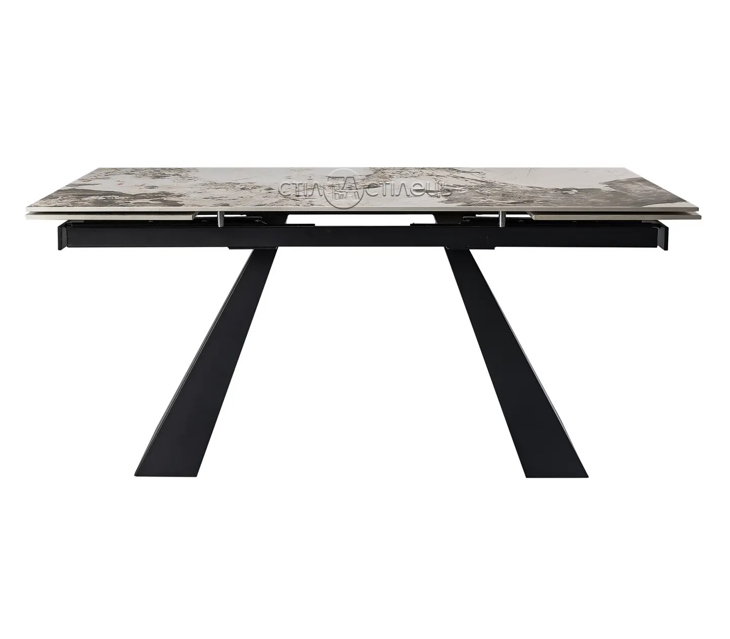 • Керамічний стіл Чезаре у кольорі “патагонія”— стильний і практичний розкладний стіл із глянцевою керамічною стільницею . Цей відтінок надає столу елегантного вигляду завдяки природним прожилкам, що поєднують нейтральні кольори.  Кераміка в кольорі патагонія з природними прожилками виглядає розкішно та елегантно, а чорна металева основа додає контрасту, підкреслюючи сучасний стиль. Це поєднання створює враження витонченості та елегантності.