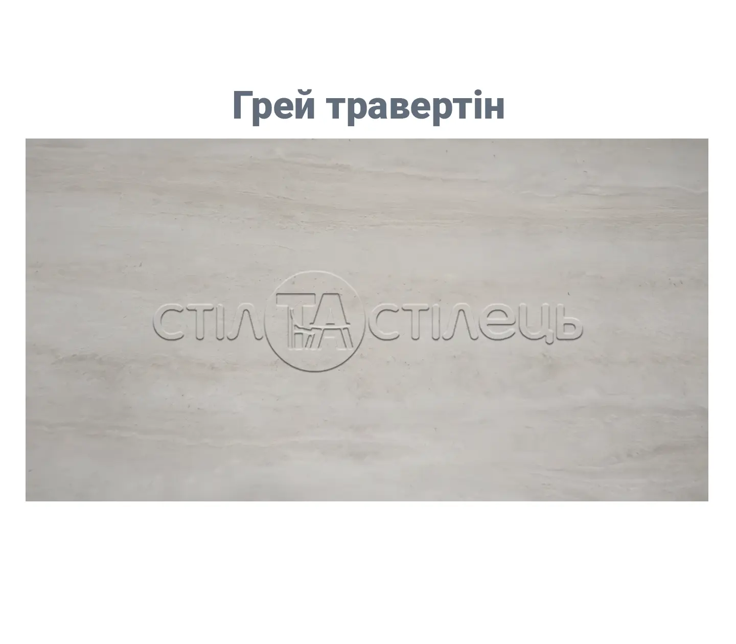 - Керамічний стіл Тереза у кольорі “грей травертін”— стильний стіл із стільницєю, яка поєднує матову кераміку та гартоване скло, що робить її дуже міцною та стійкою до подряпин, тепла, і навіть випадкових пошкоджень. Столешня має витончені сіро-бежеві відтінки з природним кам’яним ефектом, що створює спокійну атмосферу розкоші та гармонії в будь-якому просторі. Цей стіл додає інтер’єру розкішного вигляду, а чорна металева основа додає столу сучасного вигляду, забезпечуючи його стабільність і надійність. Це поєднання створює враження шику та елегантності.