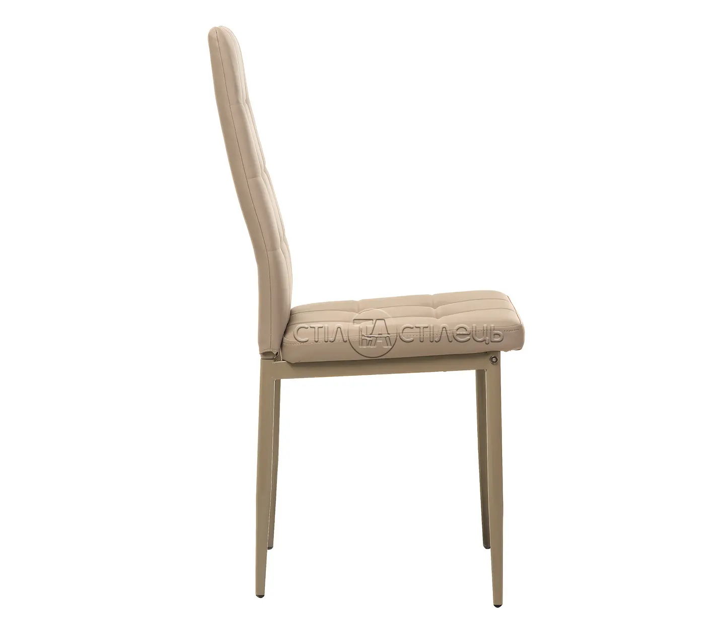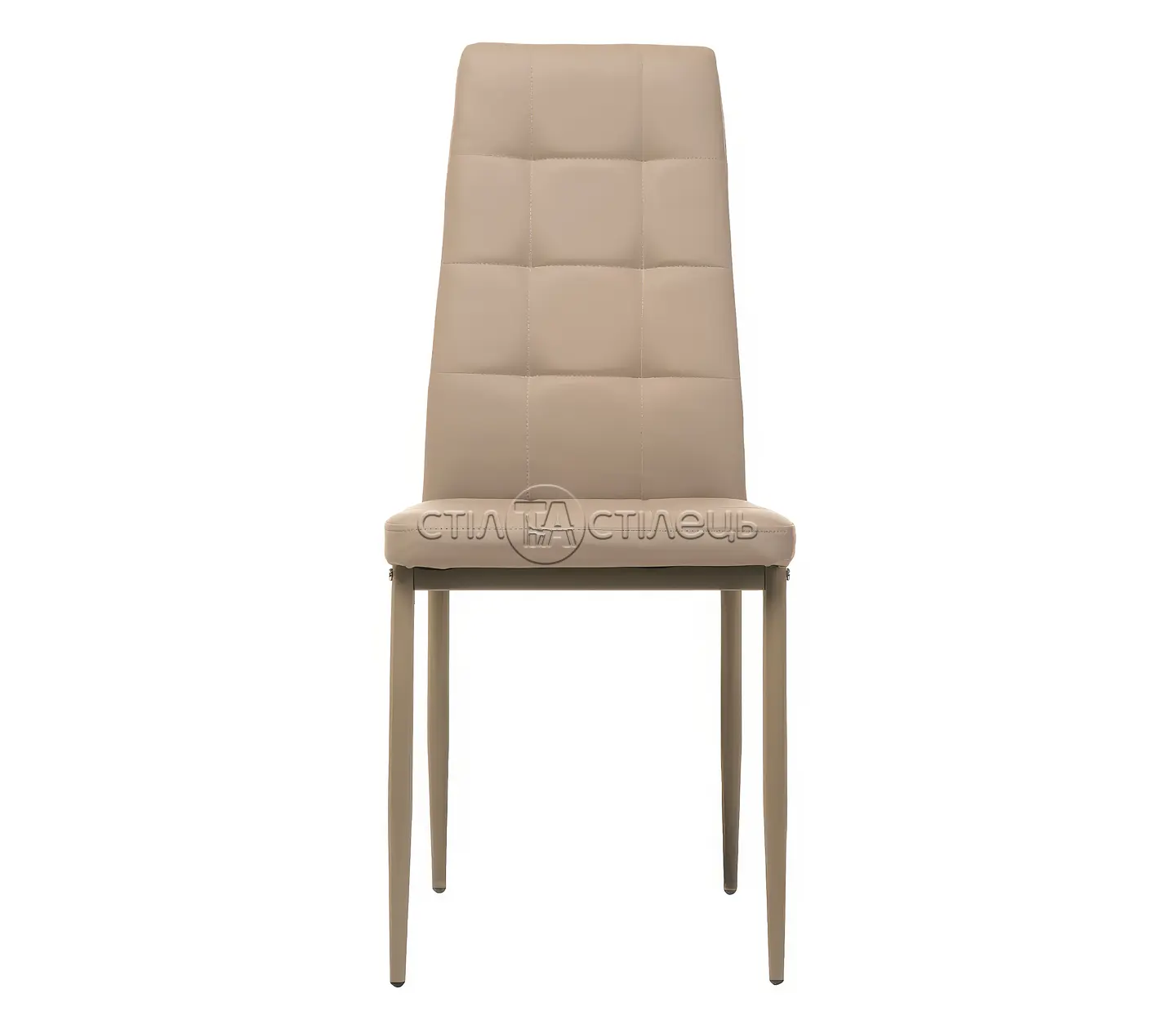 • Металеві ніжки стільця додають стійкості і витривалості, роблячи виріб надійним для щоденного використання. Делікатне фарбування металевої основи в тон оббивки створює гармонійний образ.