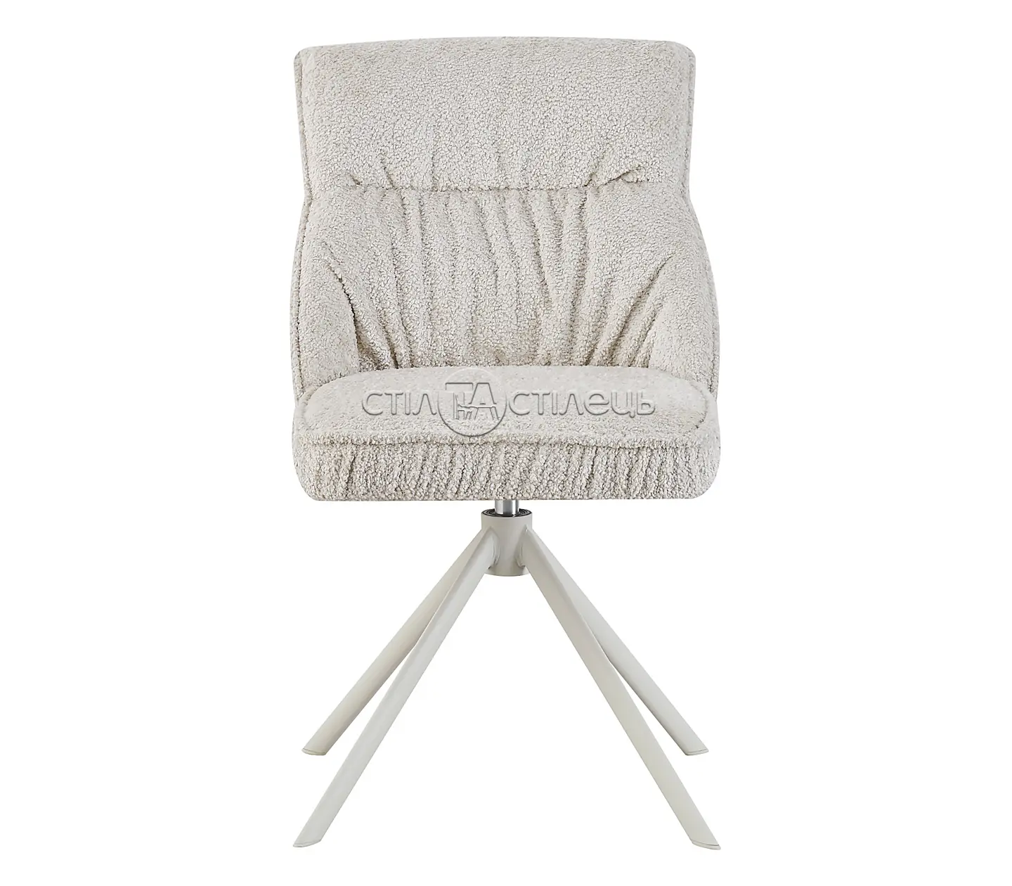 - Поворотний стілець Р168 в оббивці з високоякісної тканини “букле” нюдових кольорів — це ідеальне рішення для створення стильного та функціонального інтер’єру. Нейтральні кольори дозволяють поєднувати його з різноманітними кольорами та текстурами. Це робить крісло універсальним елементом меблів, яке можна використовувати в сучасних, класичних або навіть скандинавських інтер’єрах.