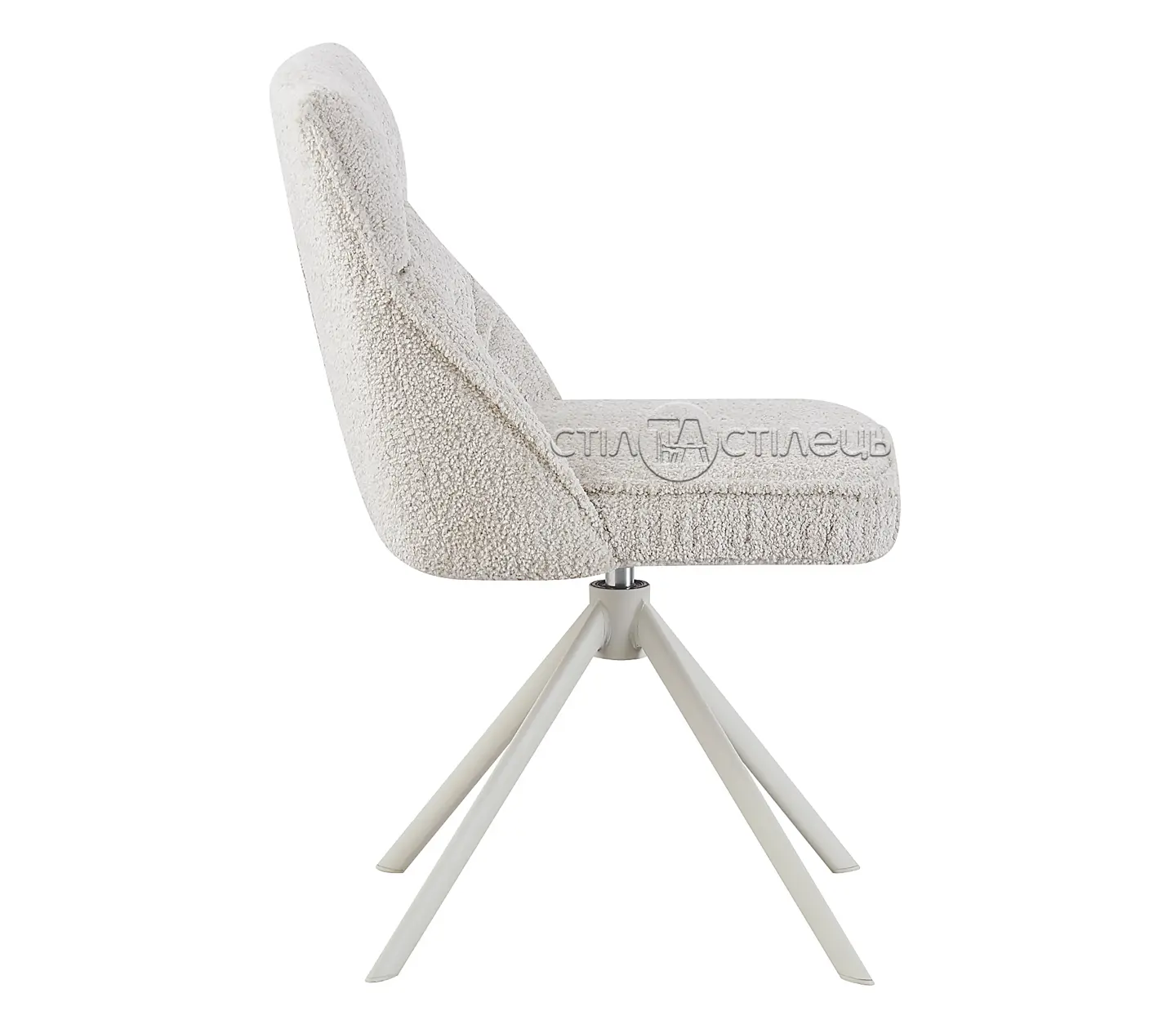 - М’якість букле забезпечує додатковий комфорт під час сидіння. Тканина приємна на дотик і створює відчуття затишку, що робить стілець комфортним навіть під час тривалого користування.